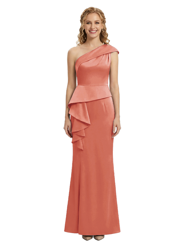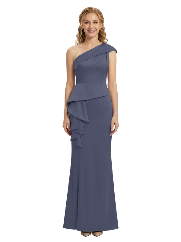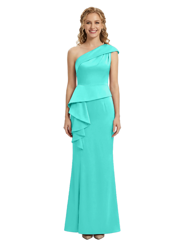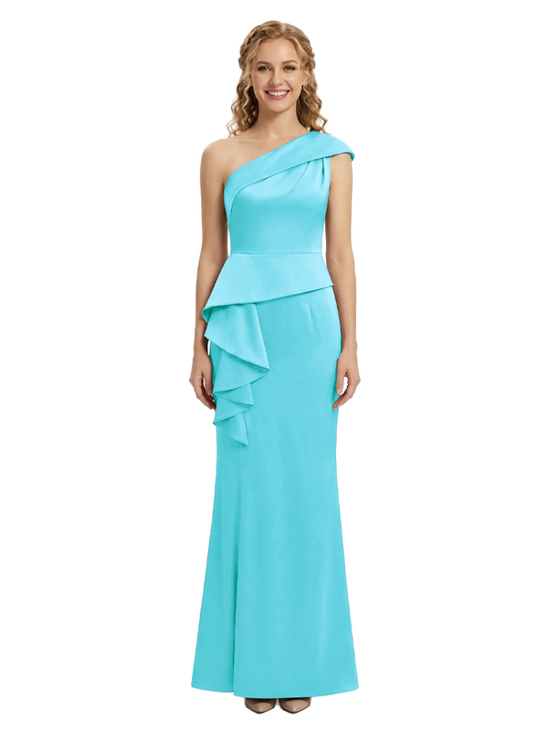Morden Asymmetric Satin Mother of The Bride Dress Sleeveless Ruffles Mermiad Maxi Gown
