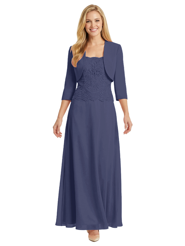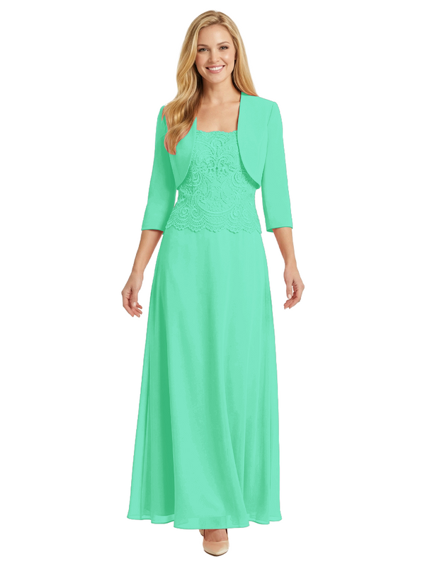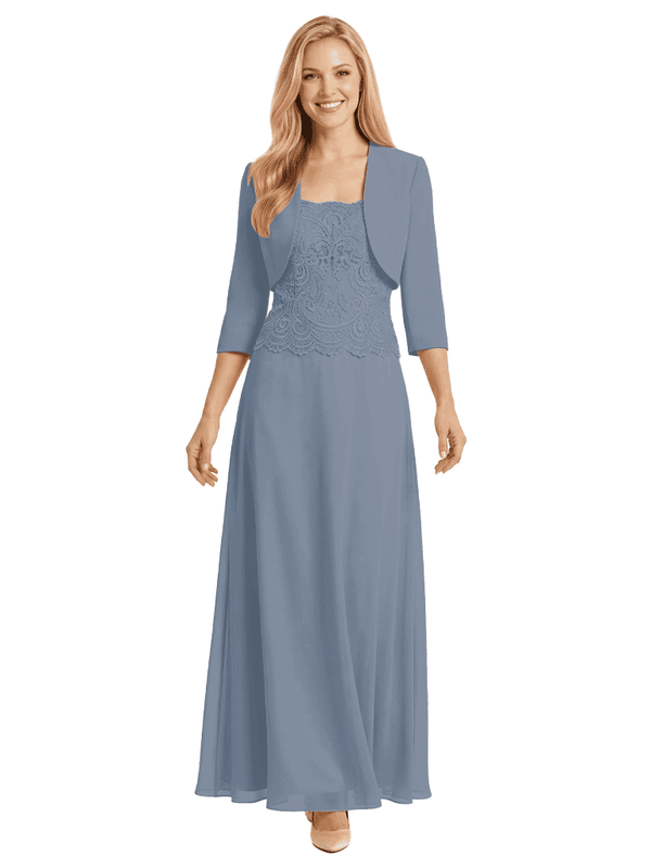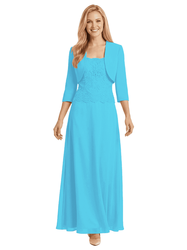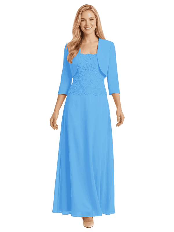 Mother of The Bride Outfit Square Neck Half Sleeve Lace Chiffon Maxi Dress with Jacket
