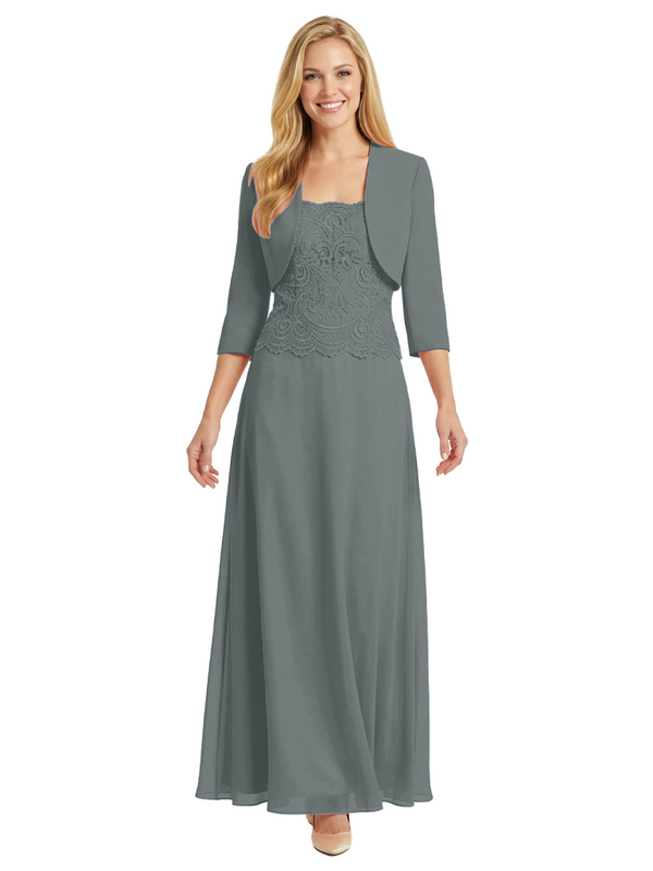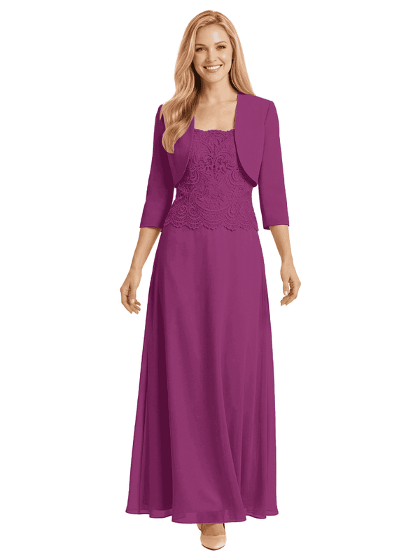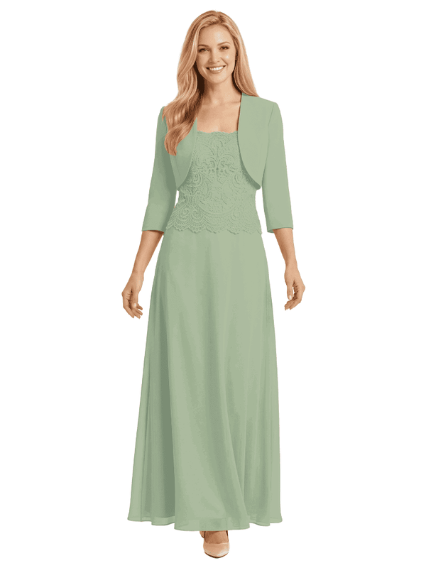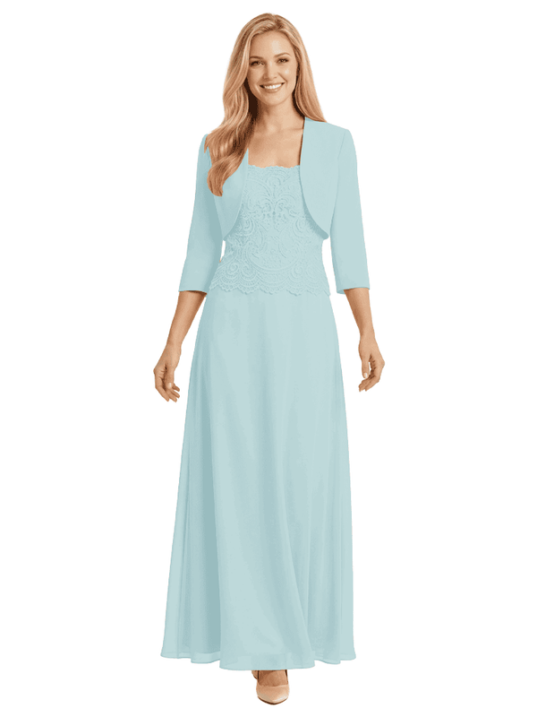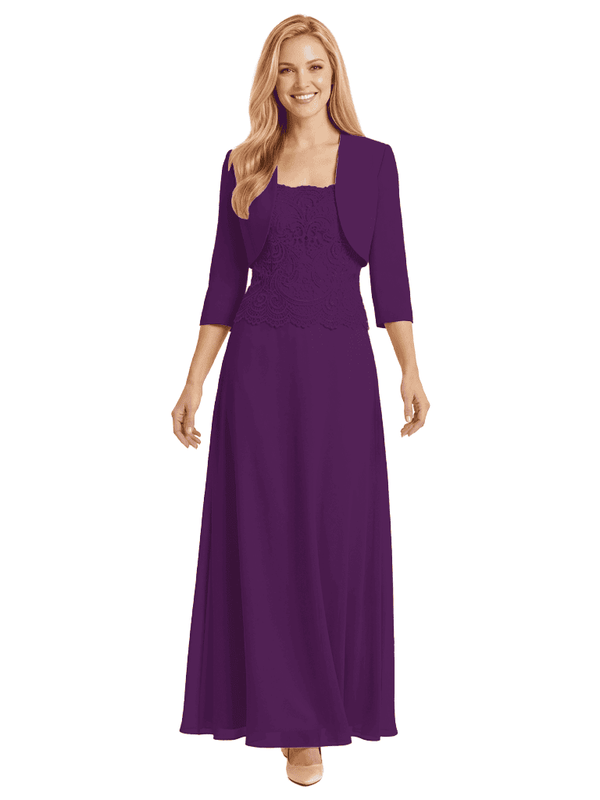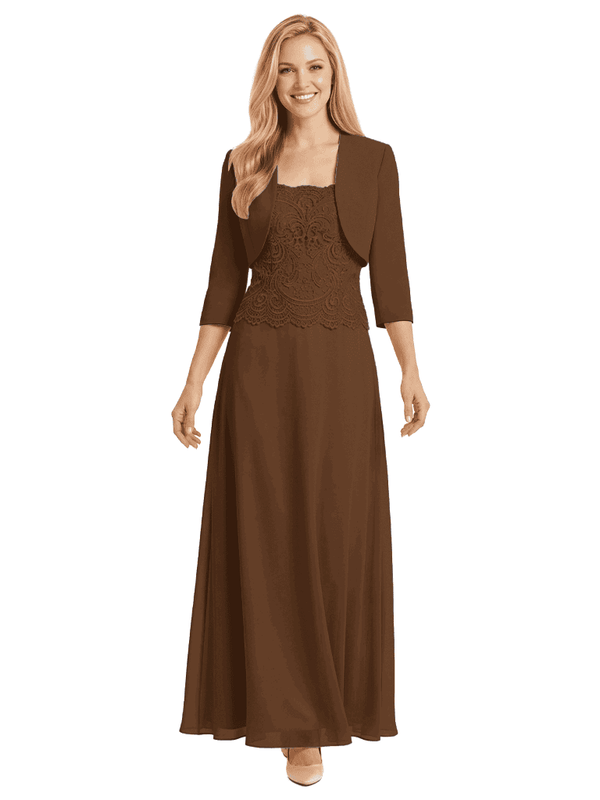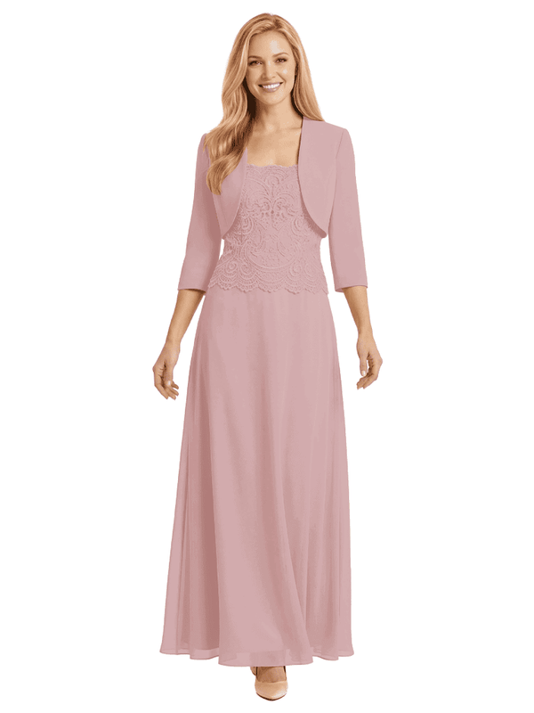 Mother of The Bride Outfit Square Neck Half Sleeve Lace Chiffon Maxi Dress with Jacket - ChicSew