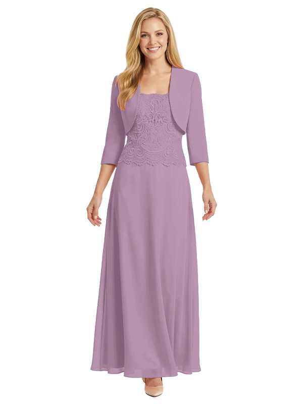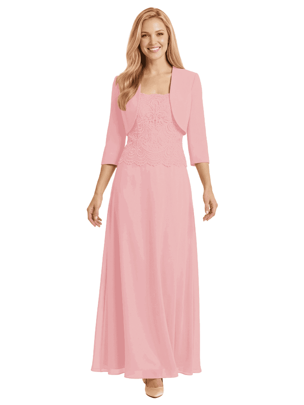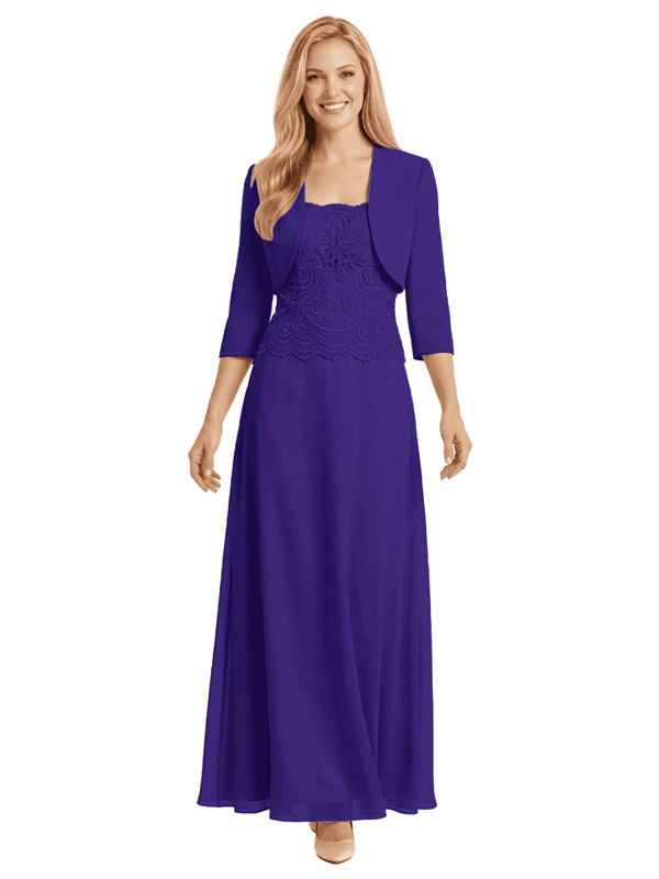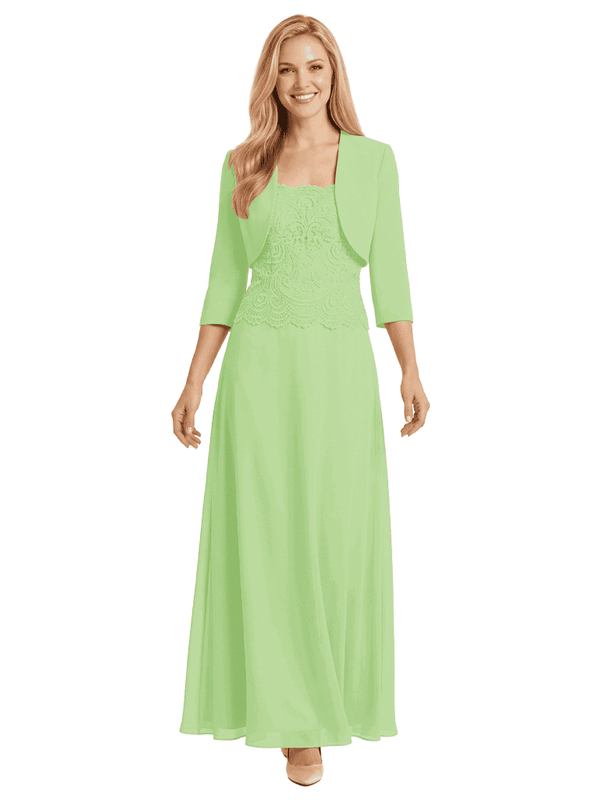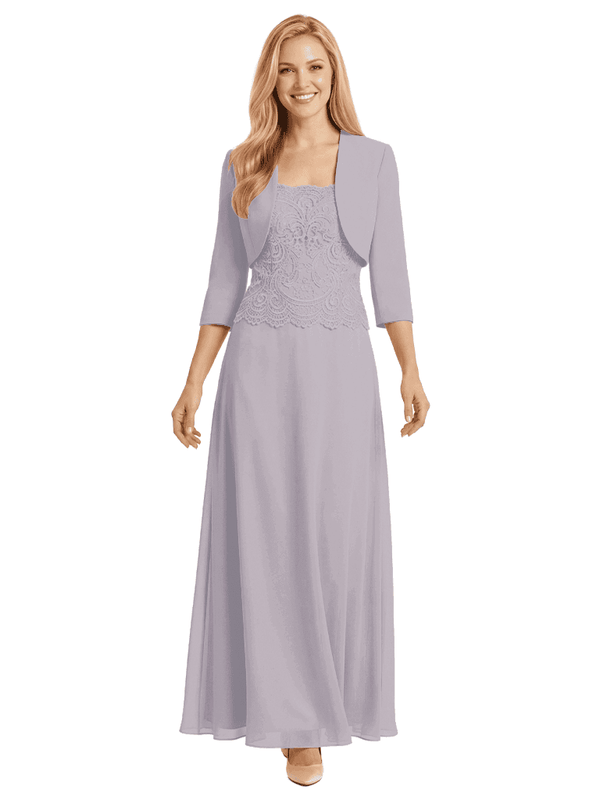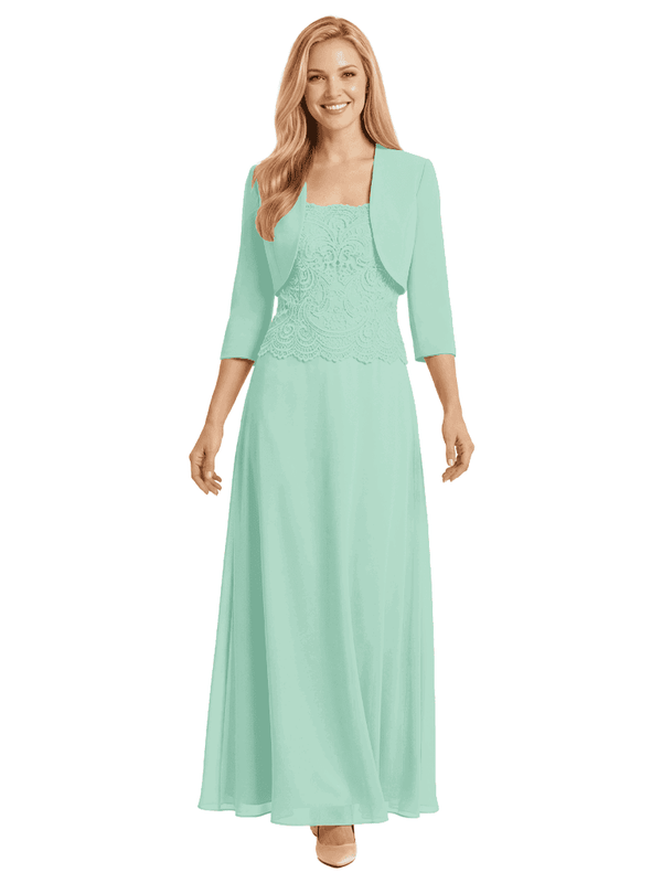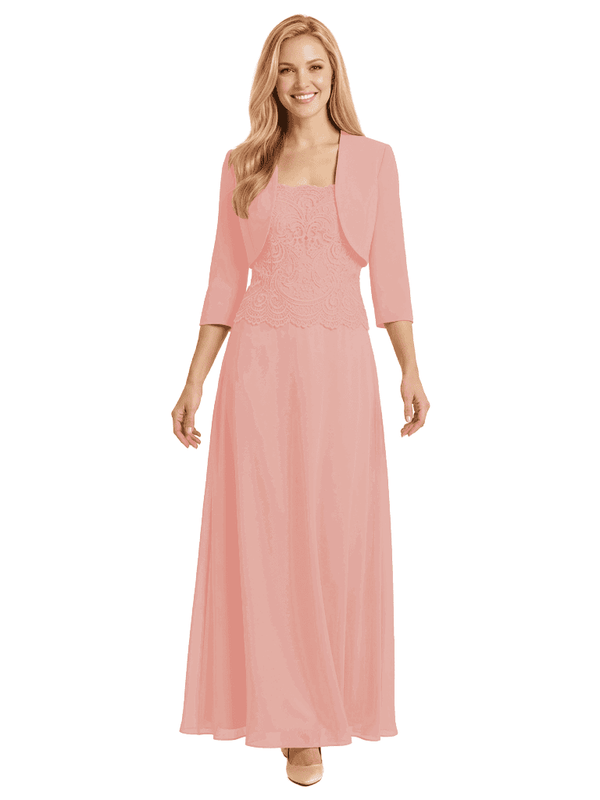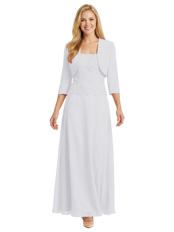Mother of The Bride Outfit Square Neck Half Sleeve Lace Chiffon Maxi Dress with Jacket - ChicSew