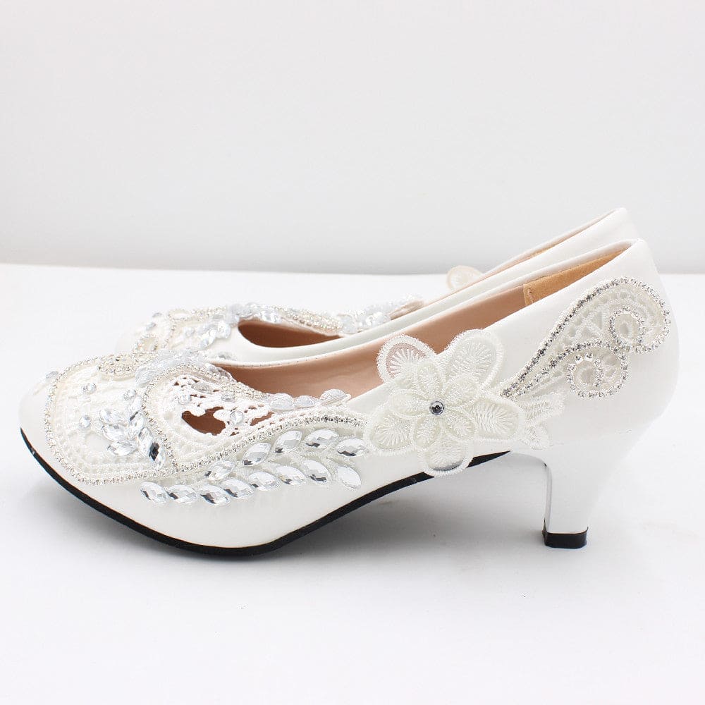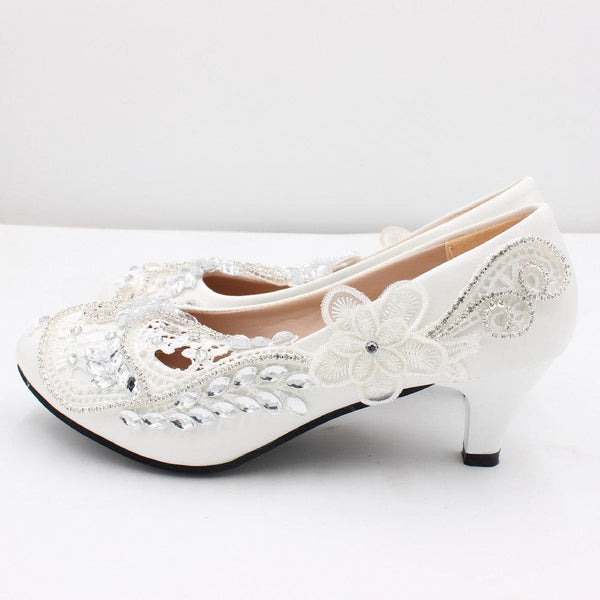 Women's Wedding Shoes Decorative White Lace Floral Wedding Heels Bridal Shoes, H85