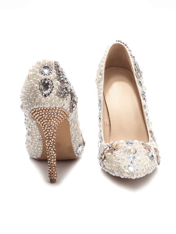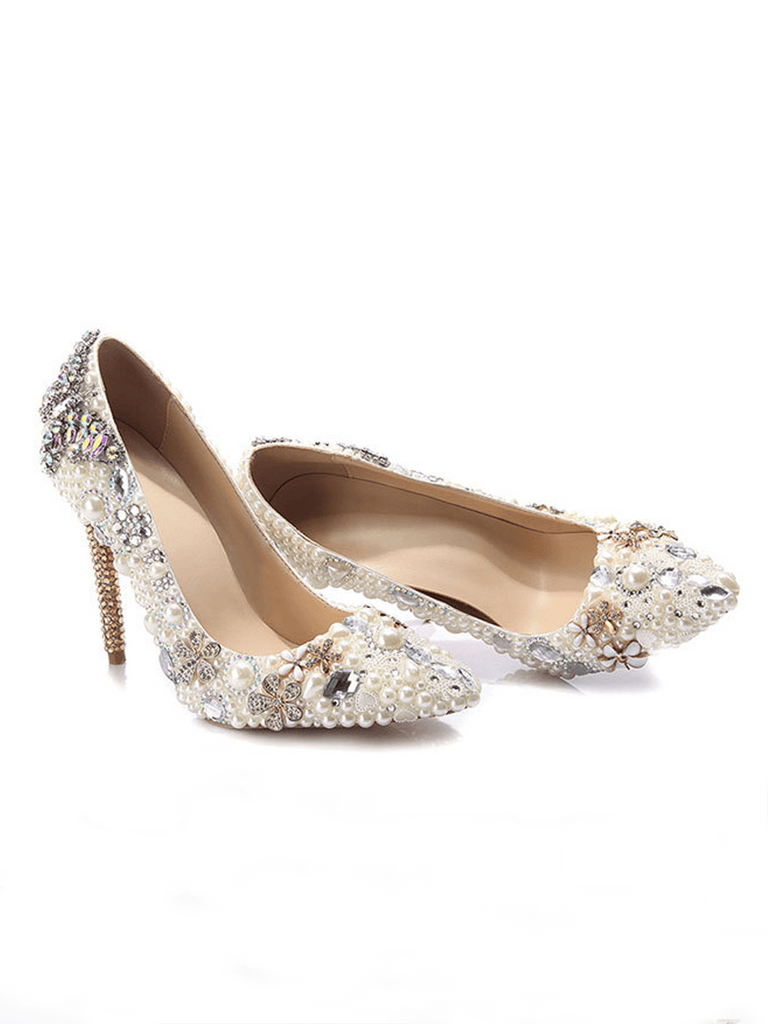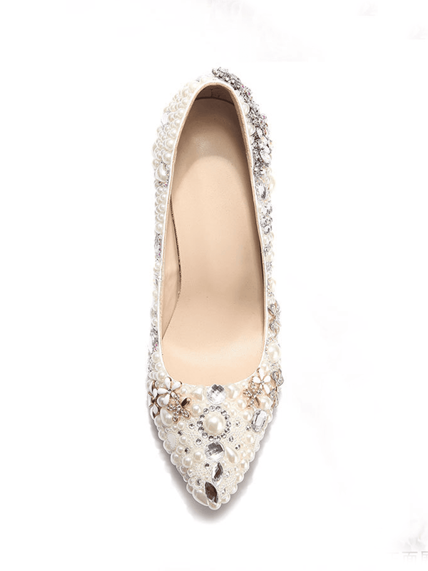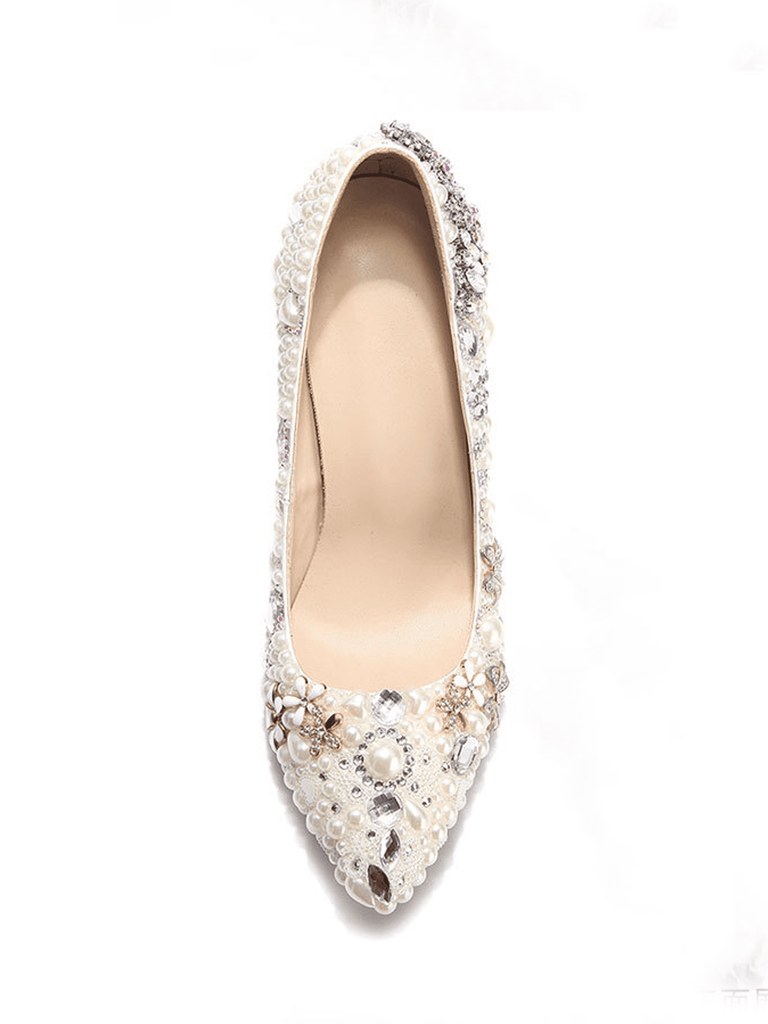 Rhinestone Pointed Toe Ivory Pearl Toe High Heel Bridal Wedding Shoes