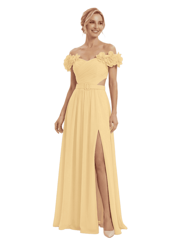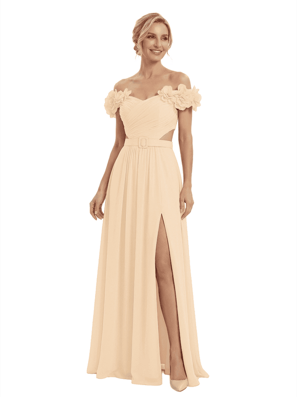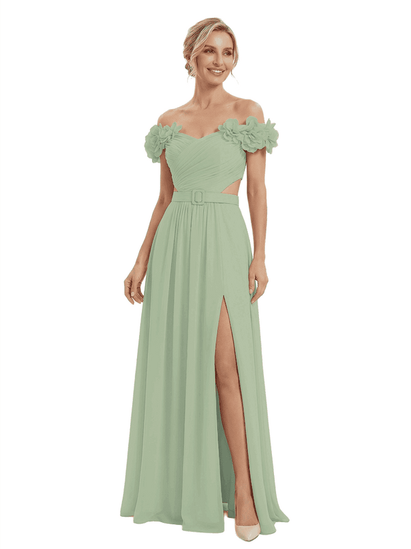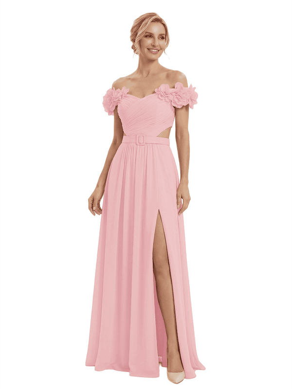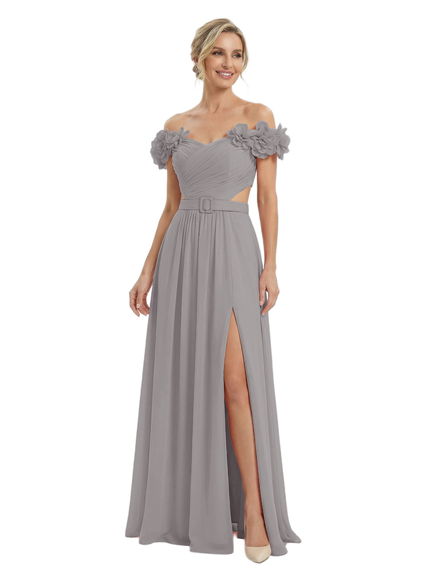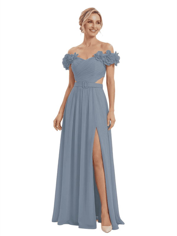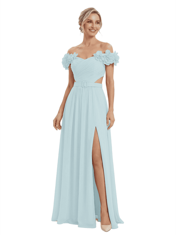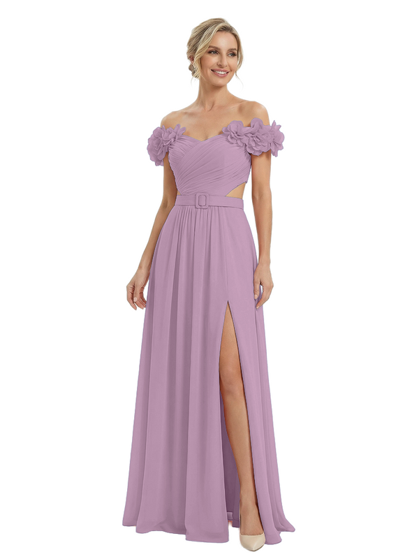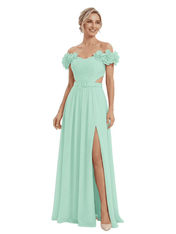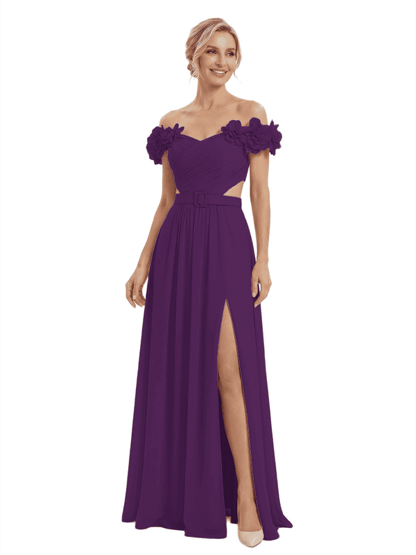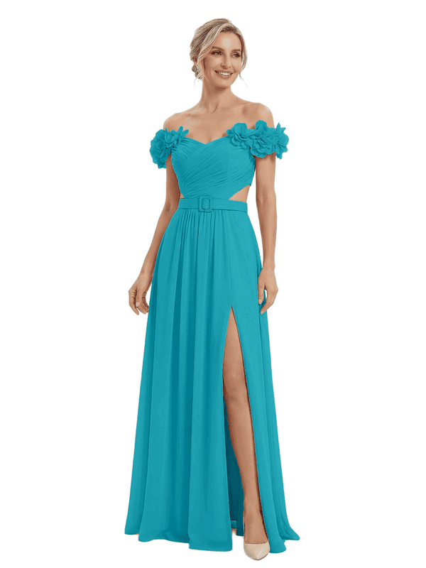 Sexy Floral Off Shoulder Sleeveless Side Slit A-Line Chiffon Mother Of The Bride Dresses
