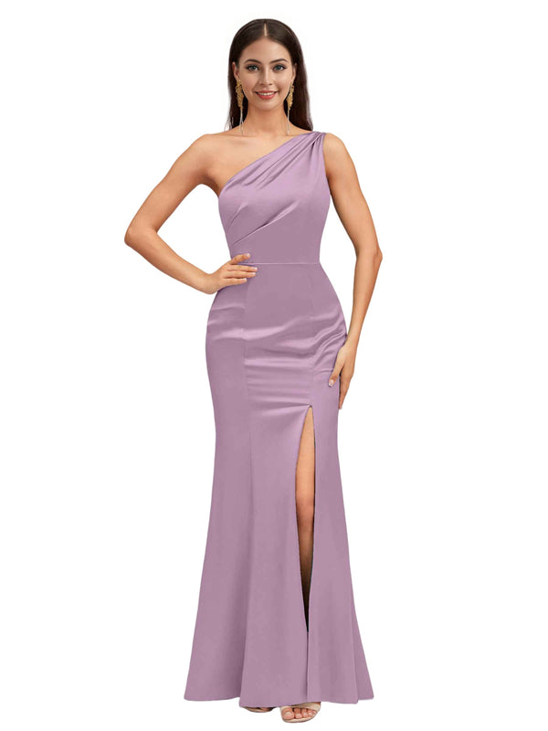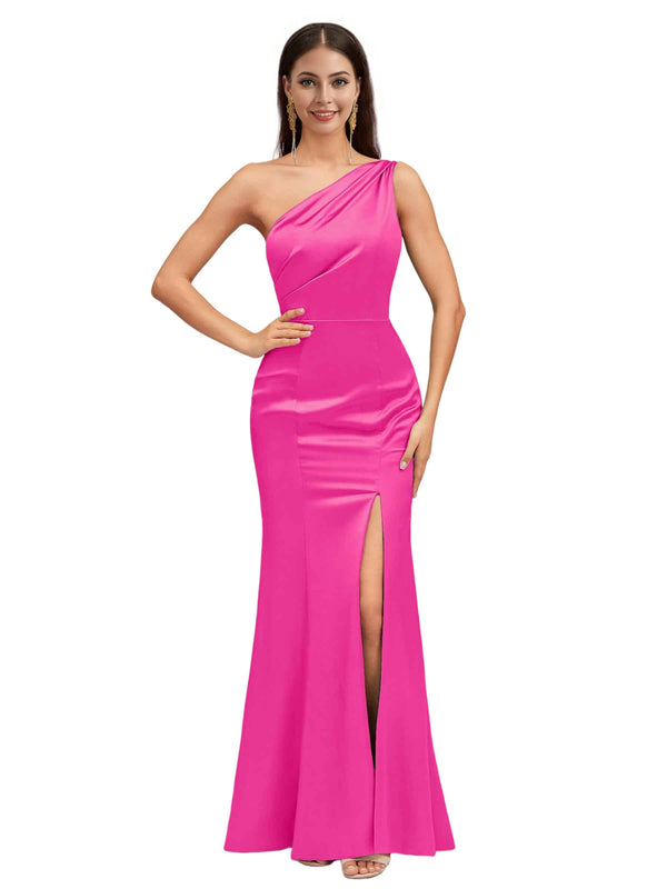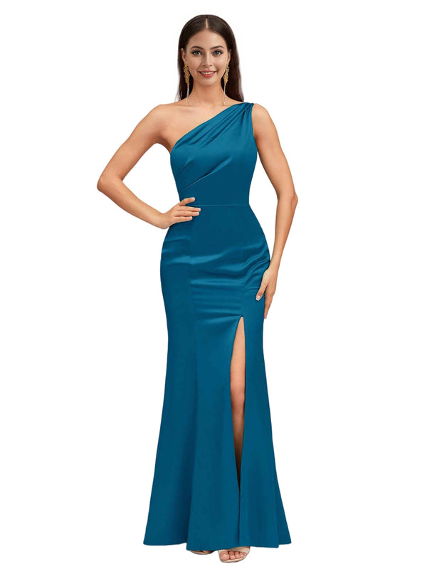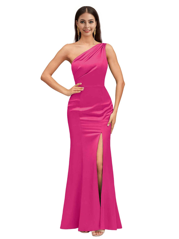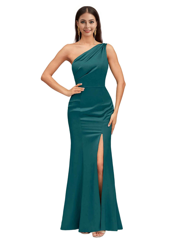 Sexy Mermaid One Shoulder Soft Satin Long Bridesmaid Dresses Online - ChicSew