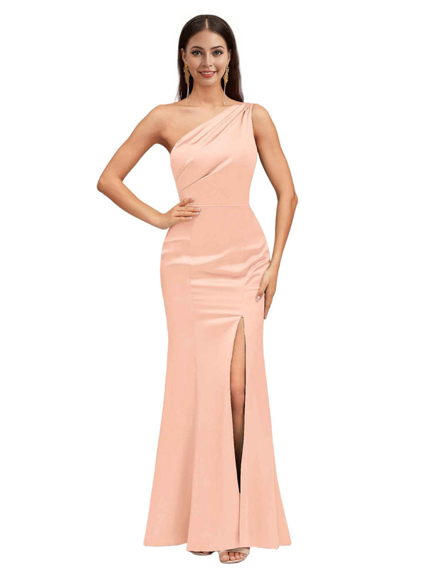 Sexy Mermaid One Shoulder Soft Satin Long Bridesmaid Dresses Online