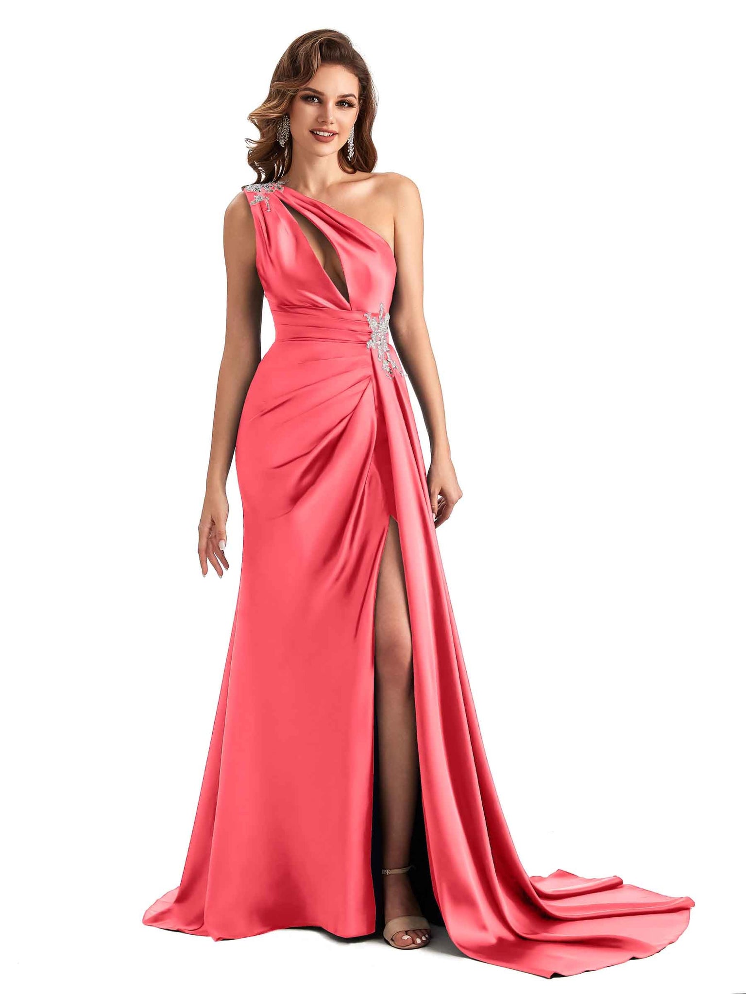 Please note: for plus size dress(size over US14), the ruching and draping may not appear exactly as picture shown because pleating is longer, the weight will be heavier than normal, so the pleating might be a little out of shape, the difference will become obviously if measurements provided not right, so please try to provide us accurate measurements.
