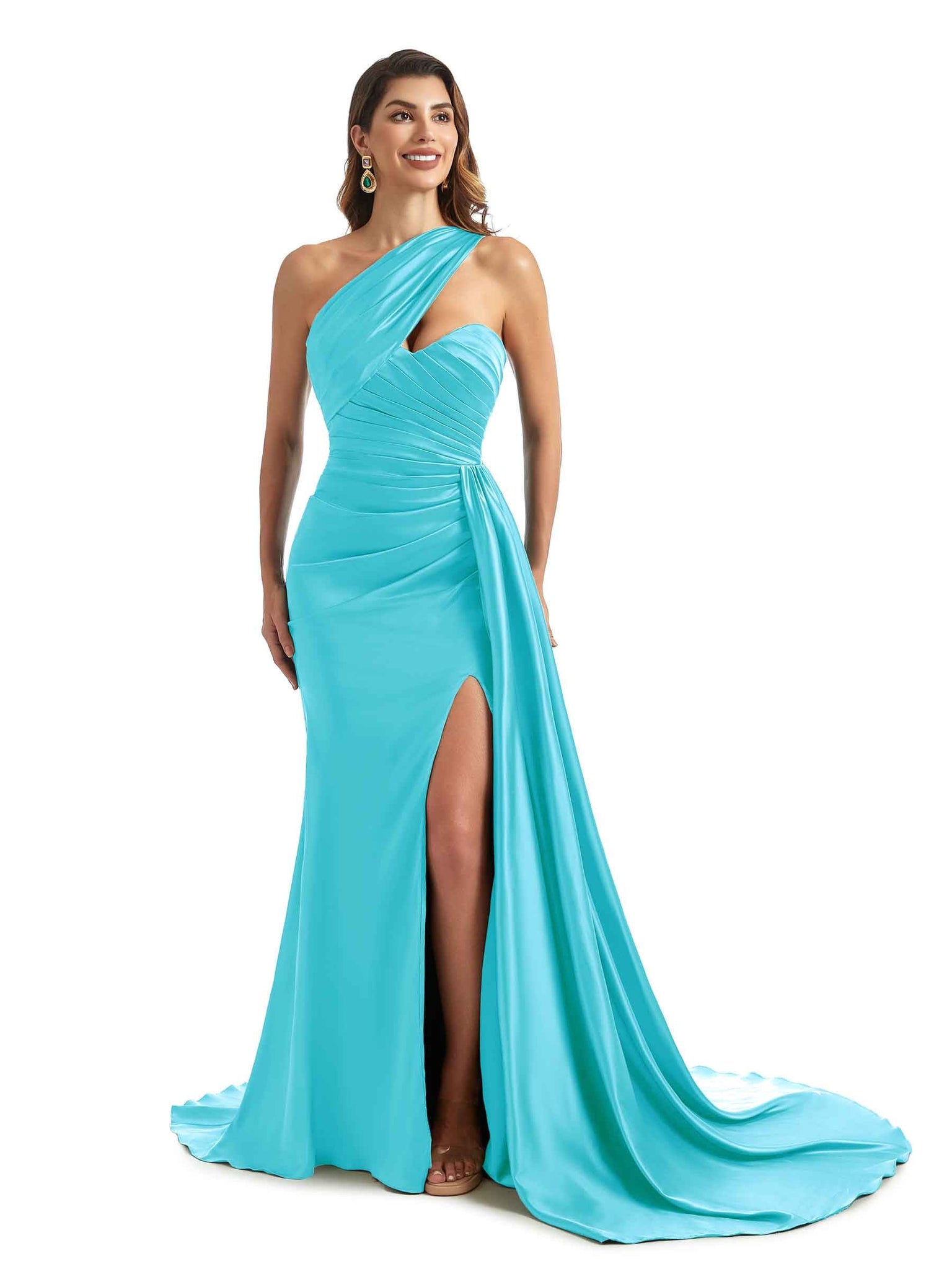 Please note: for plus size dress(size over US14), the ruching and draping may not appear exactly as picture shown because pleating is longer, the weight will be heavier than normal, so the pleating might be a little out of shape, the difference will become obviously if measurements provided not right, so please try to provide us accurate measurements.