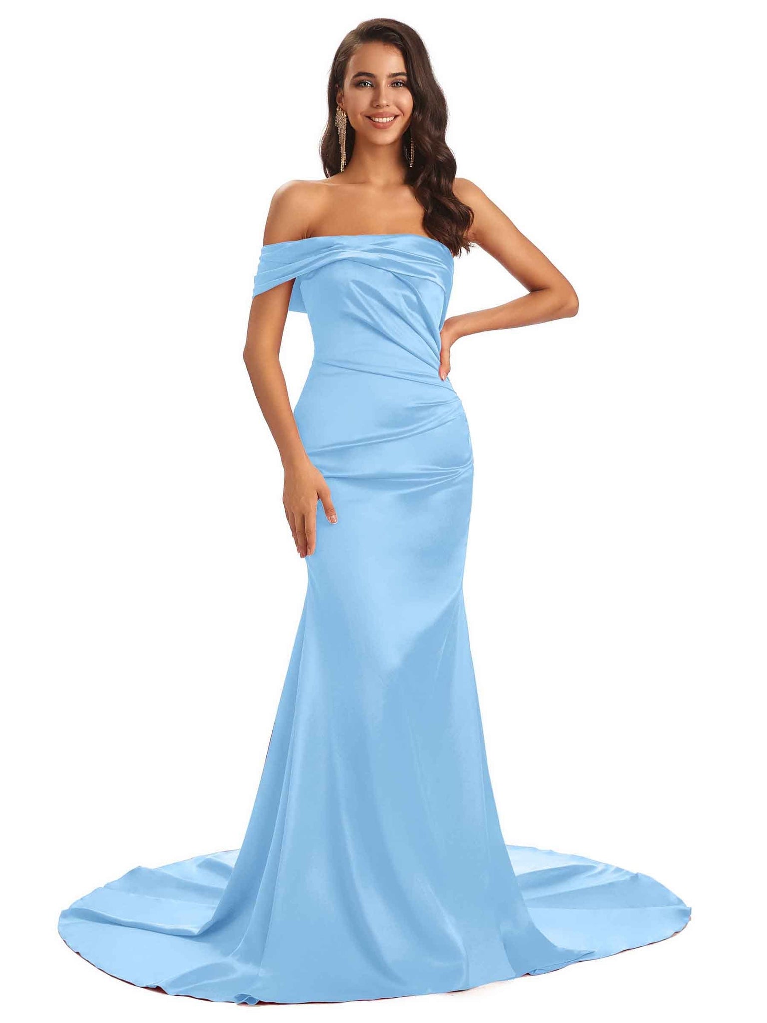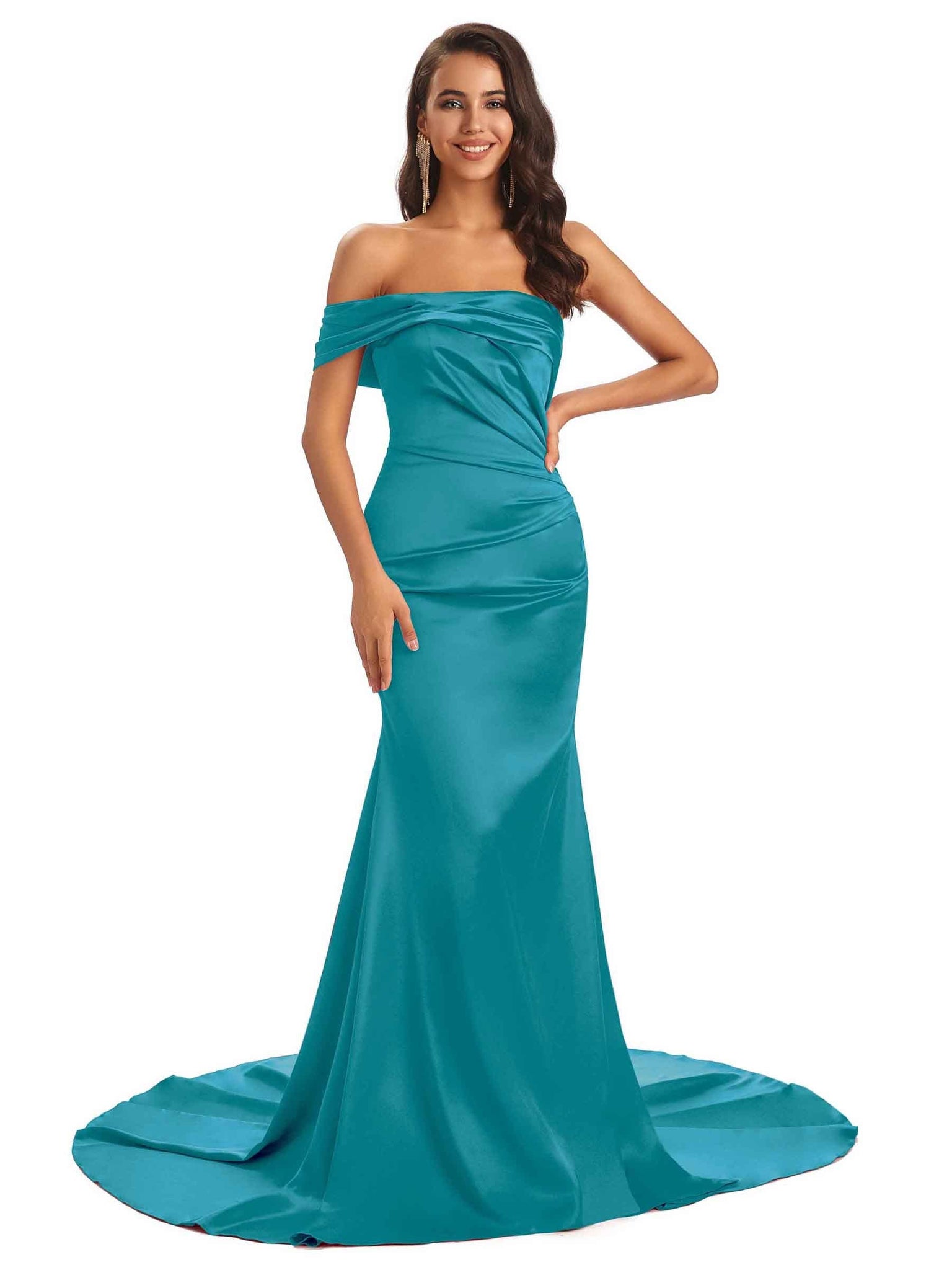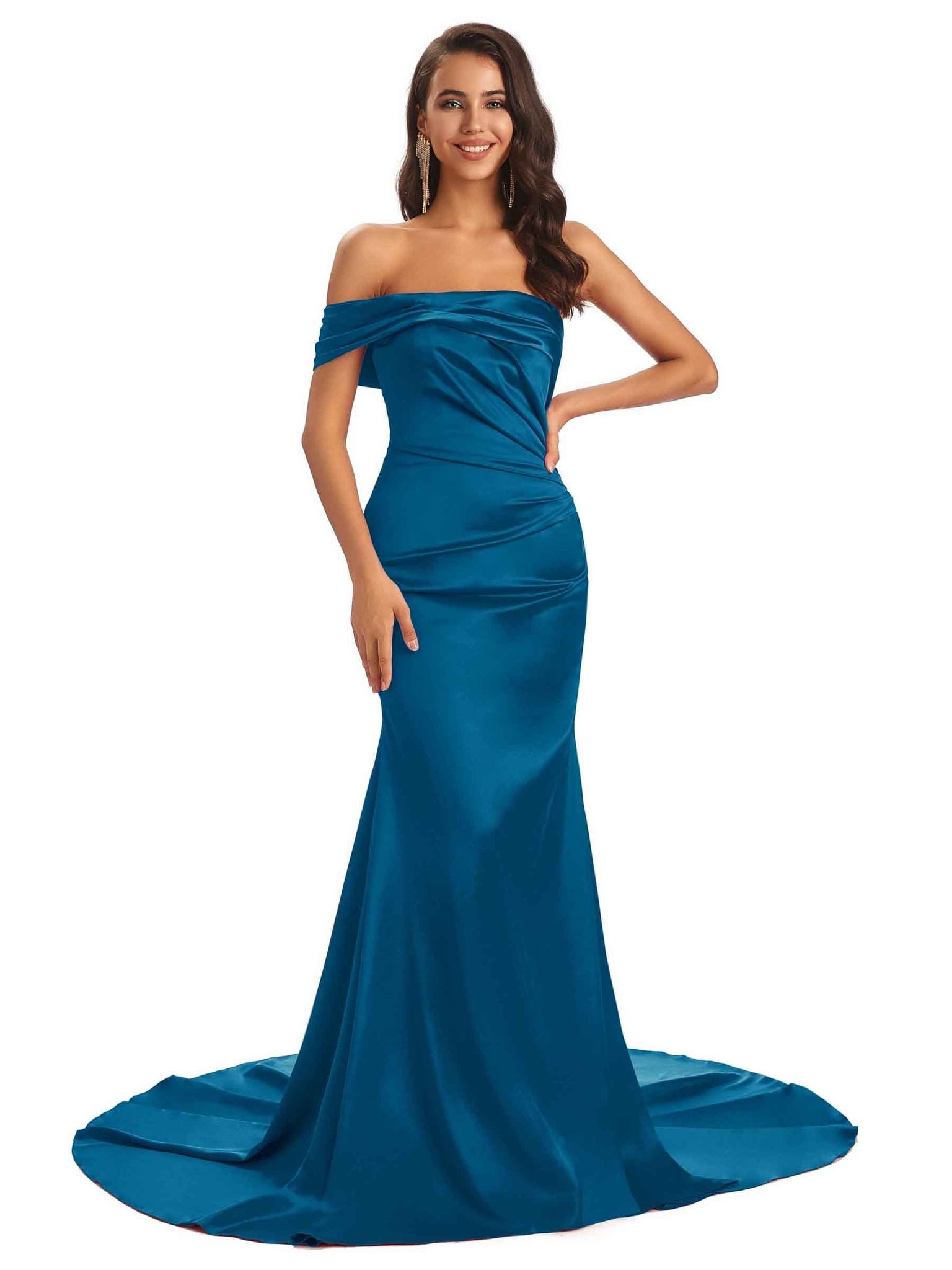 Sexy Soft Satin One Shoulder Pleats Floor-Length Mermaid Prom Dresses