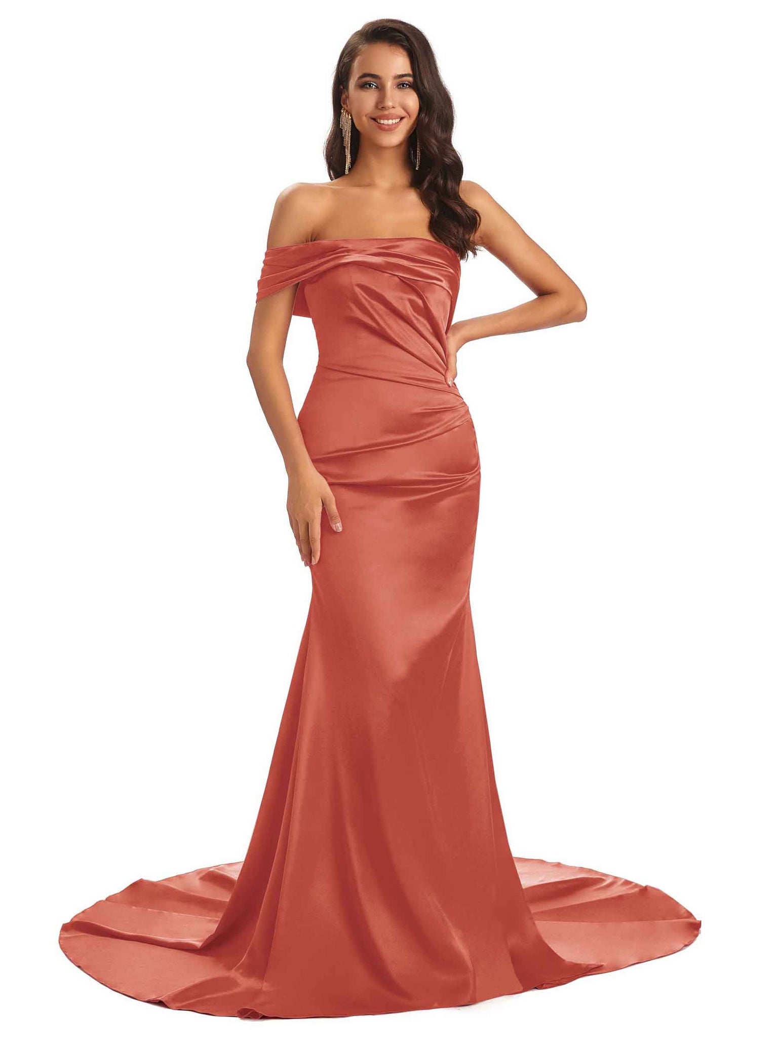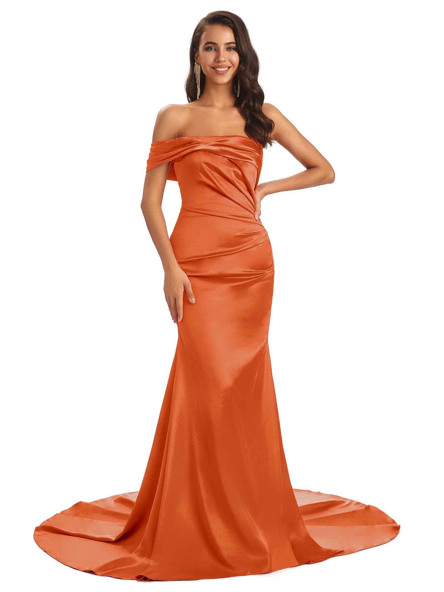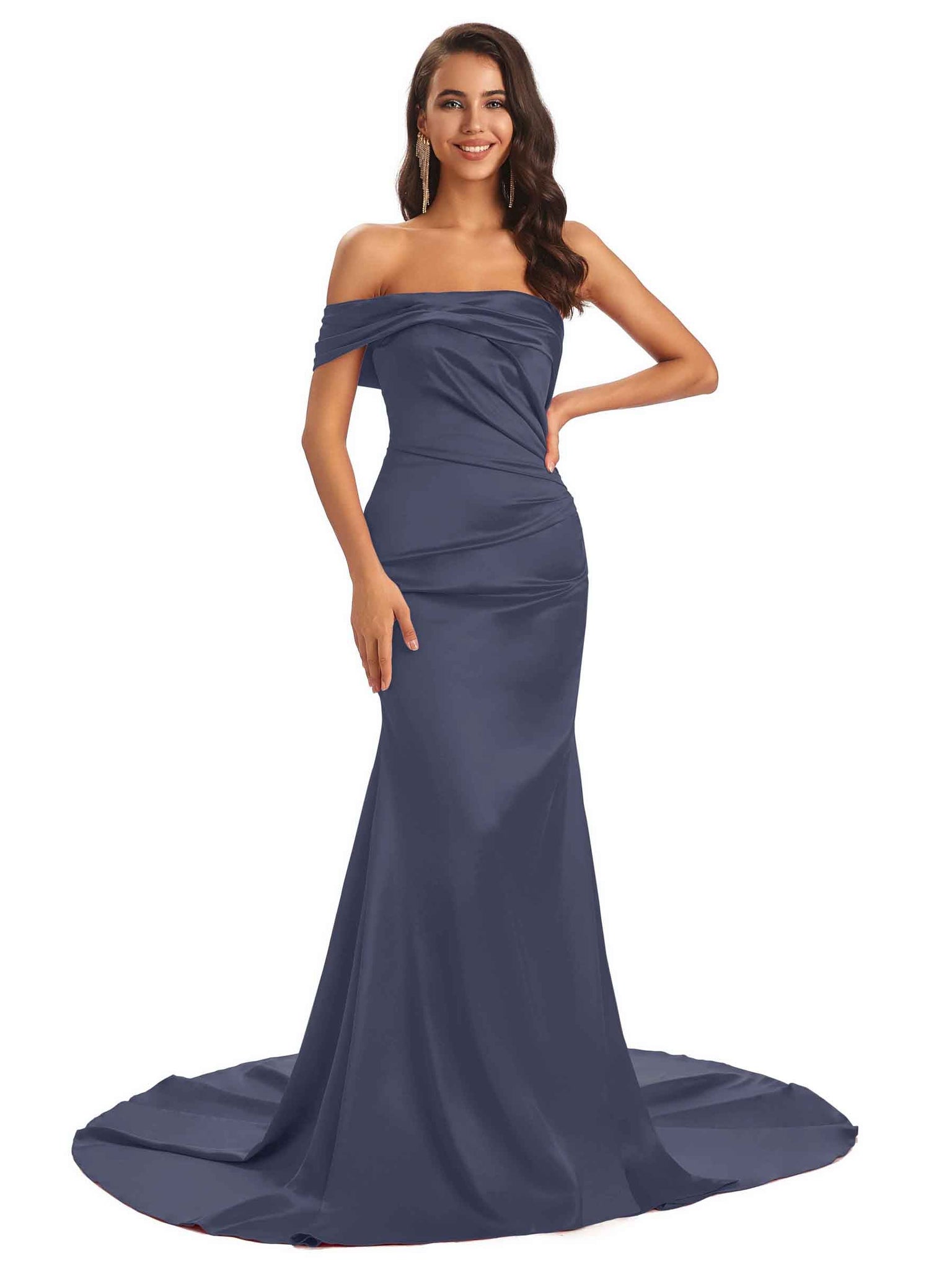 Sexy Soft Satin One Shoulder Pleats Floor-Length Mermaid Prom Dresses