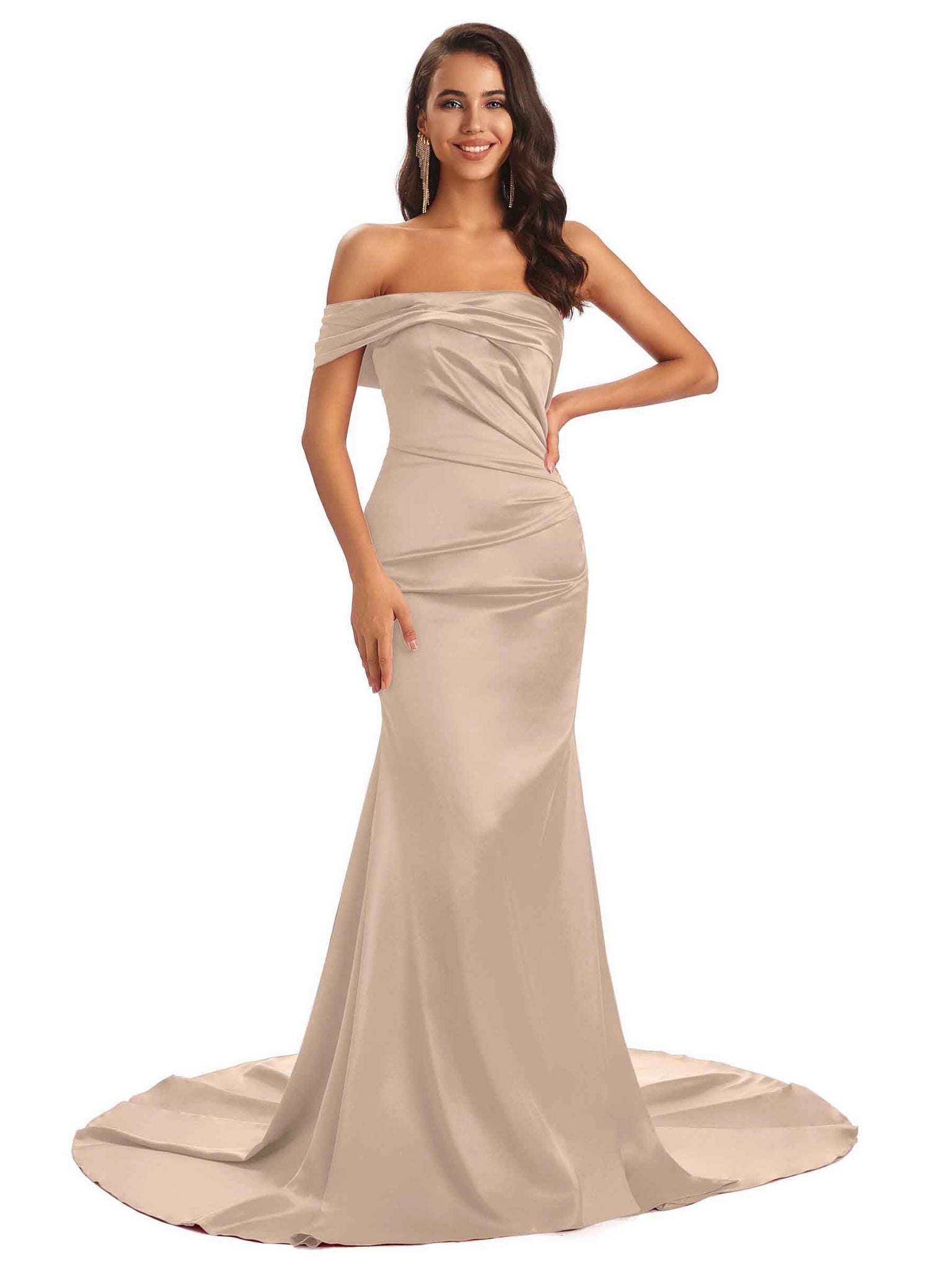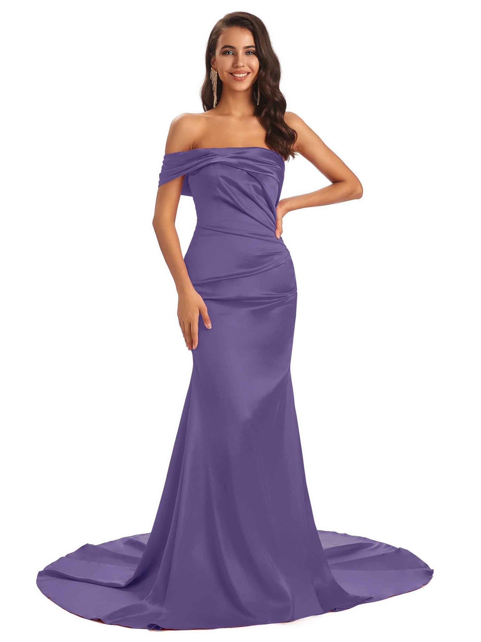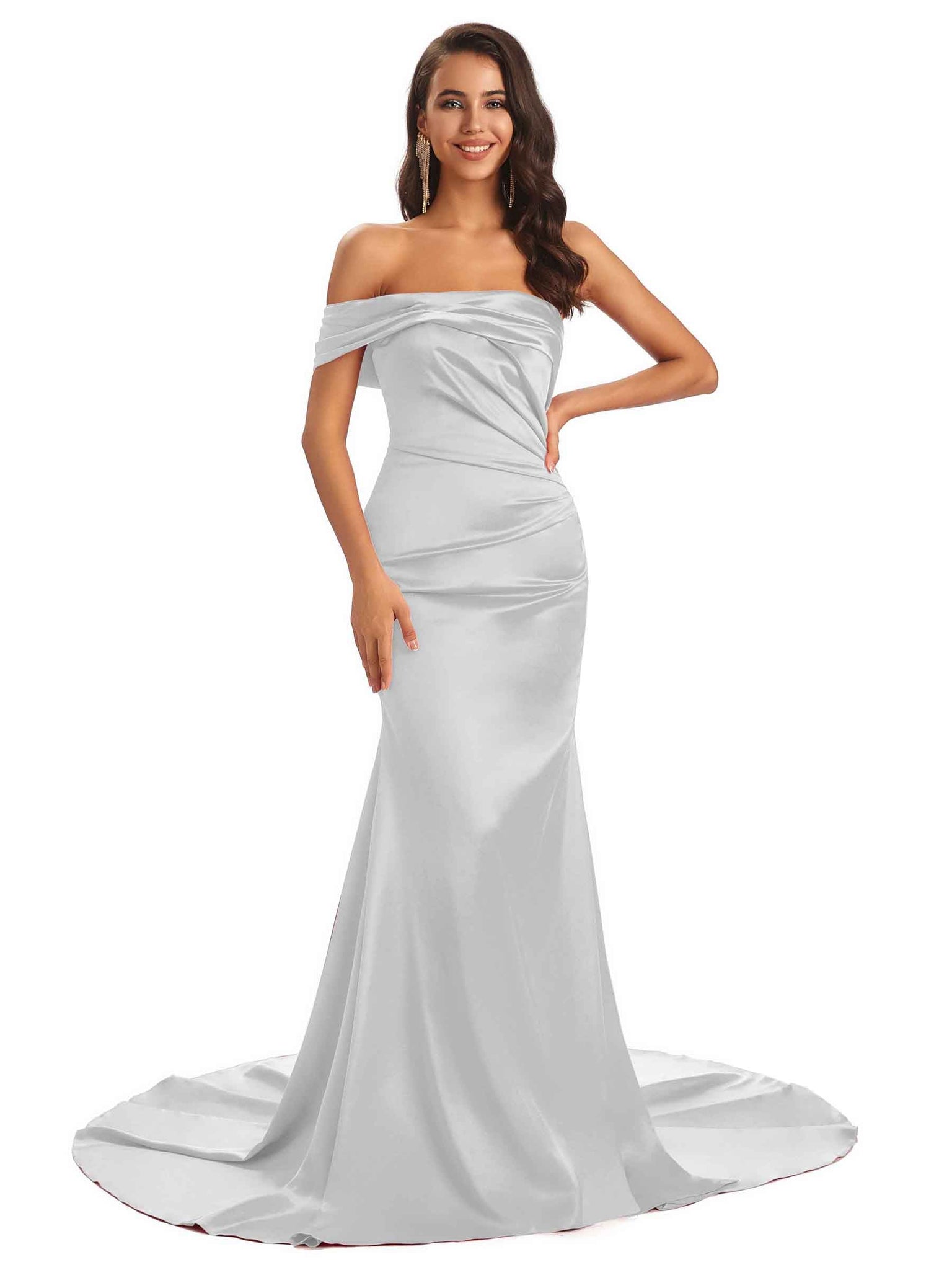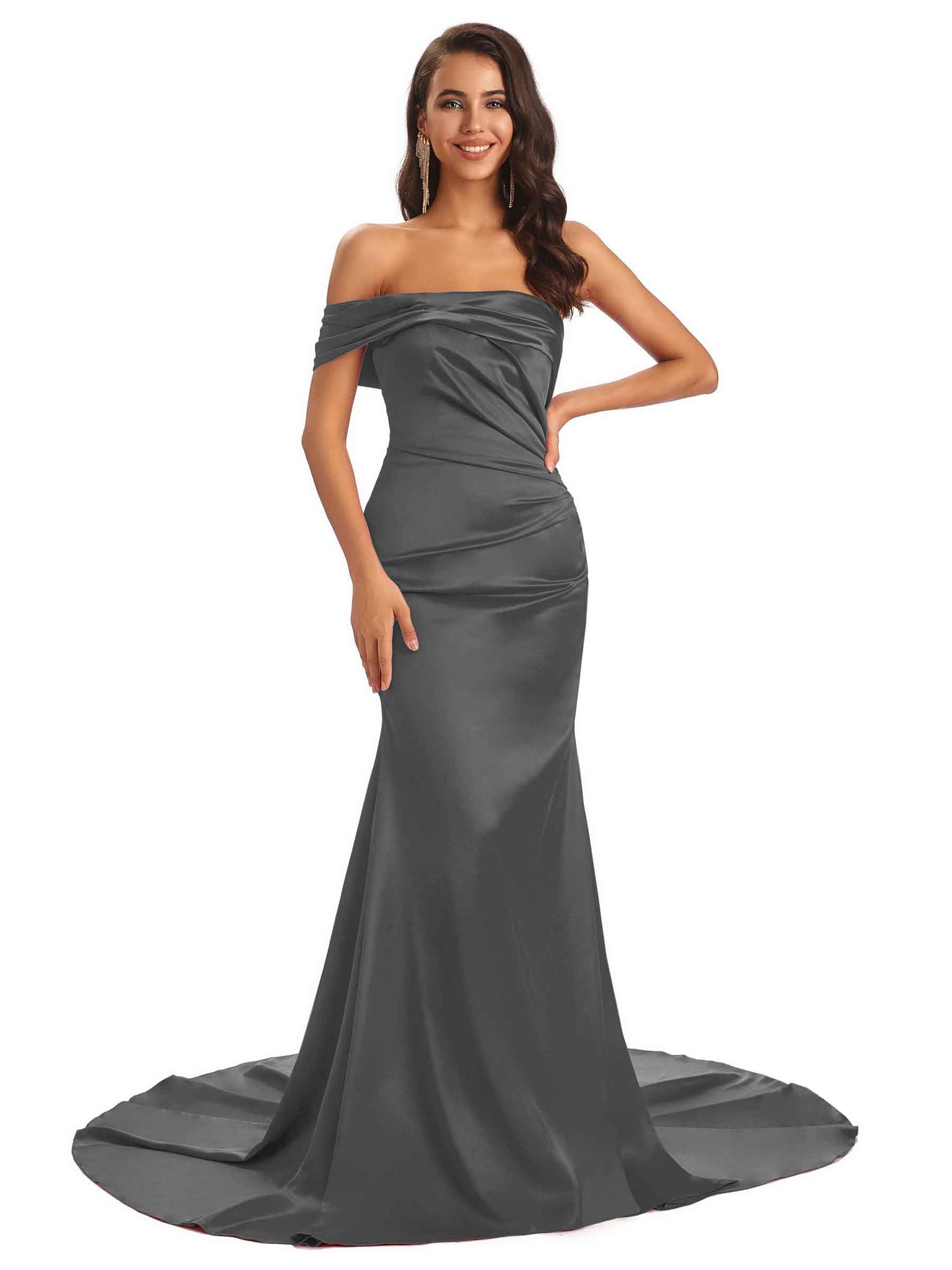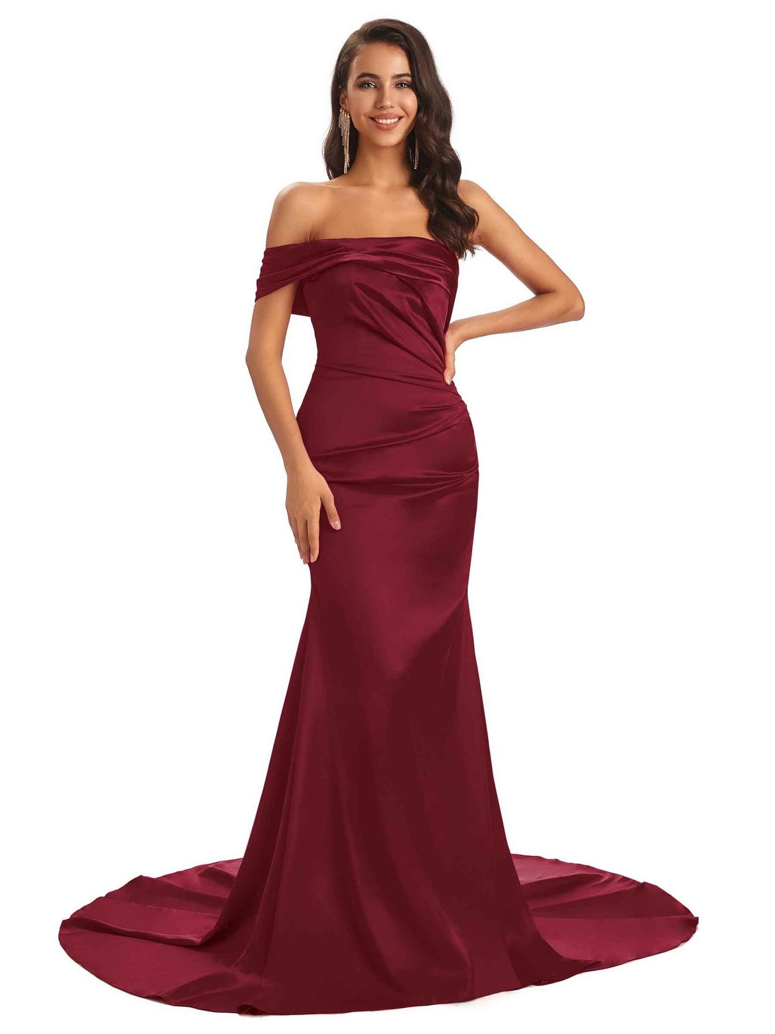 Sexy Soft Satin One Shoulder Pleats Floor-Length Mermaid Prom Dresses- ChicSew