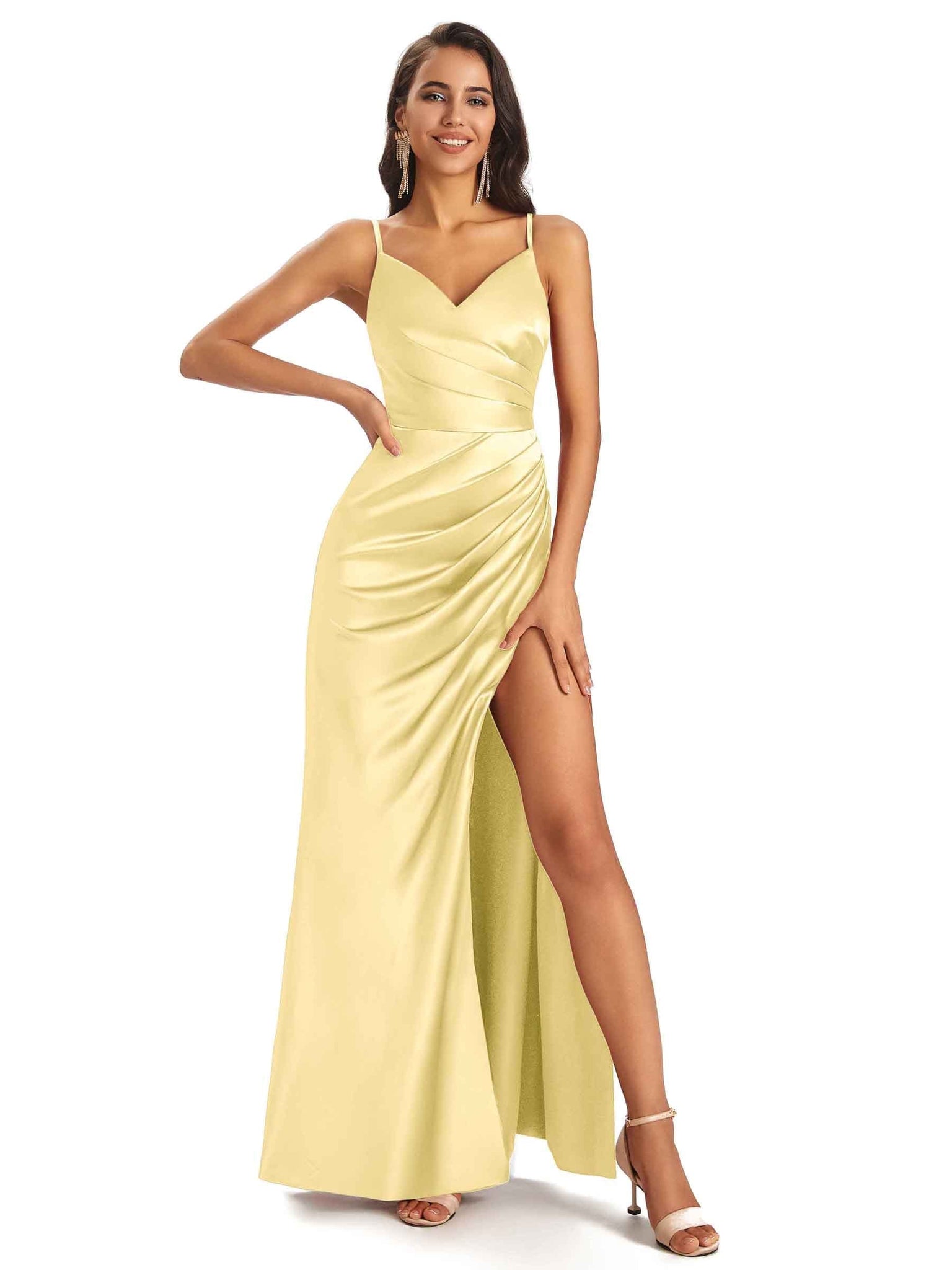 Please note: for plus size dress(size over US14), the ruching and draping may not appear exactly as picture shown because pleating is longer, the weight will be heavier than normal, so the pleating might be a little out of shape, the difference will become obviously if measurements provided not right, so please try to provide us accurate measurements.