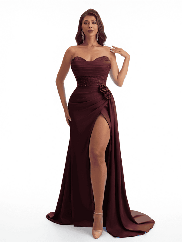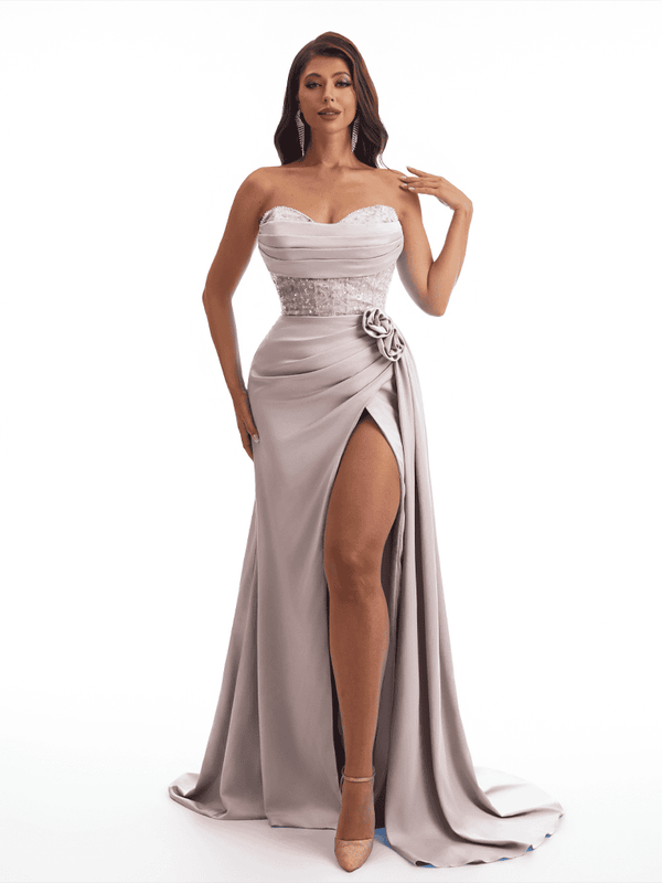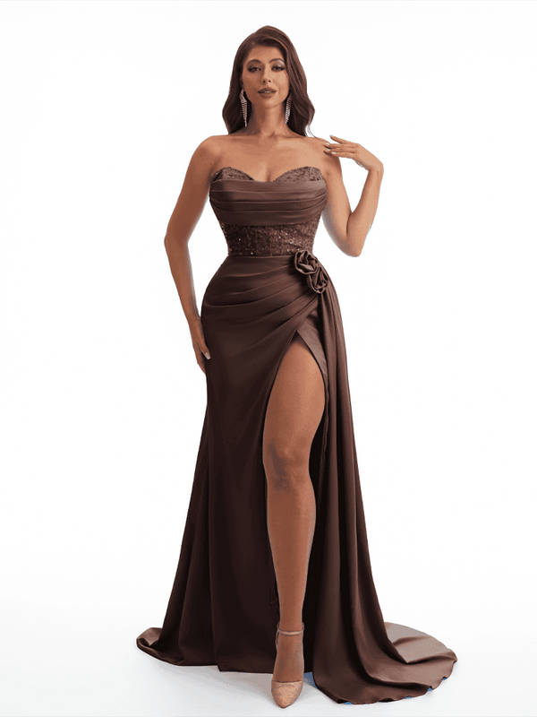 Embellishment: Pleats, Side Slit, Sequin Lace