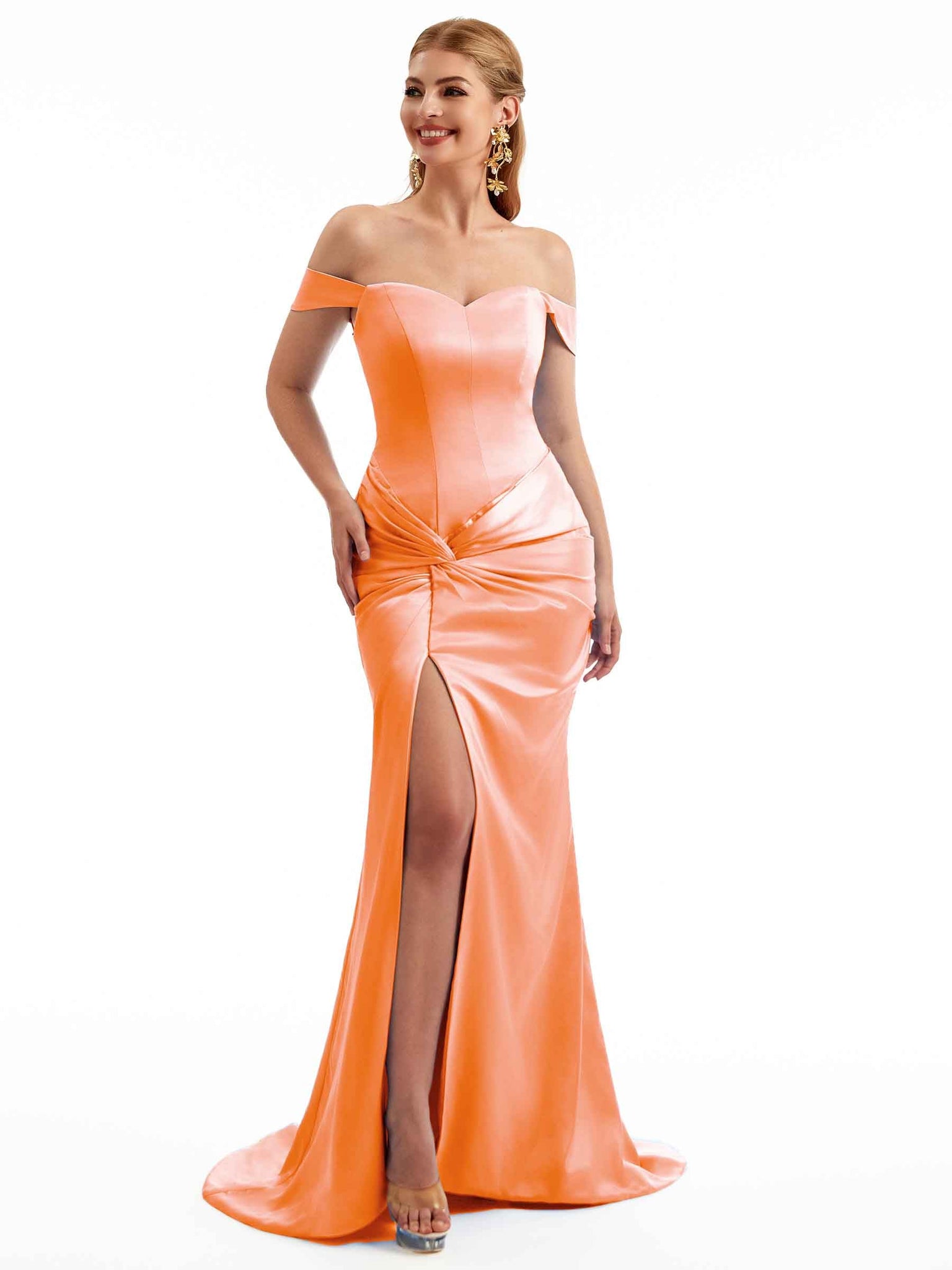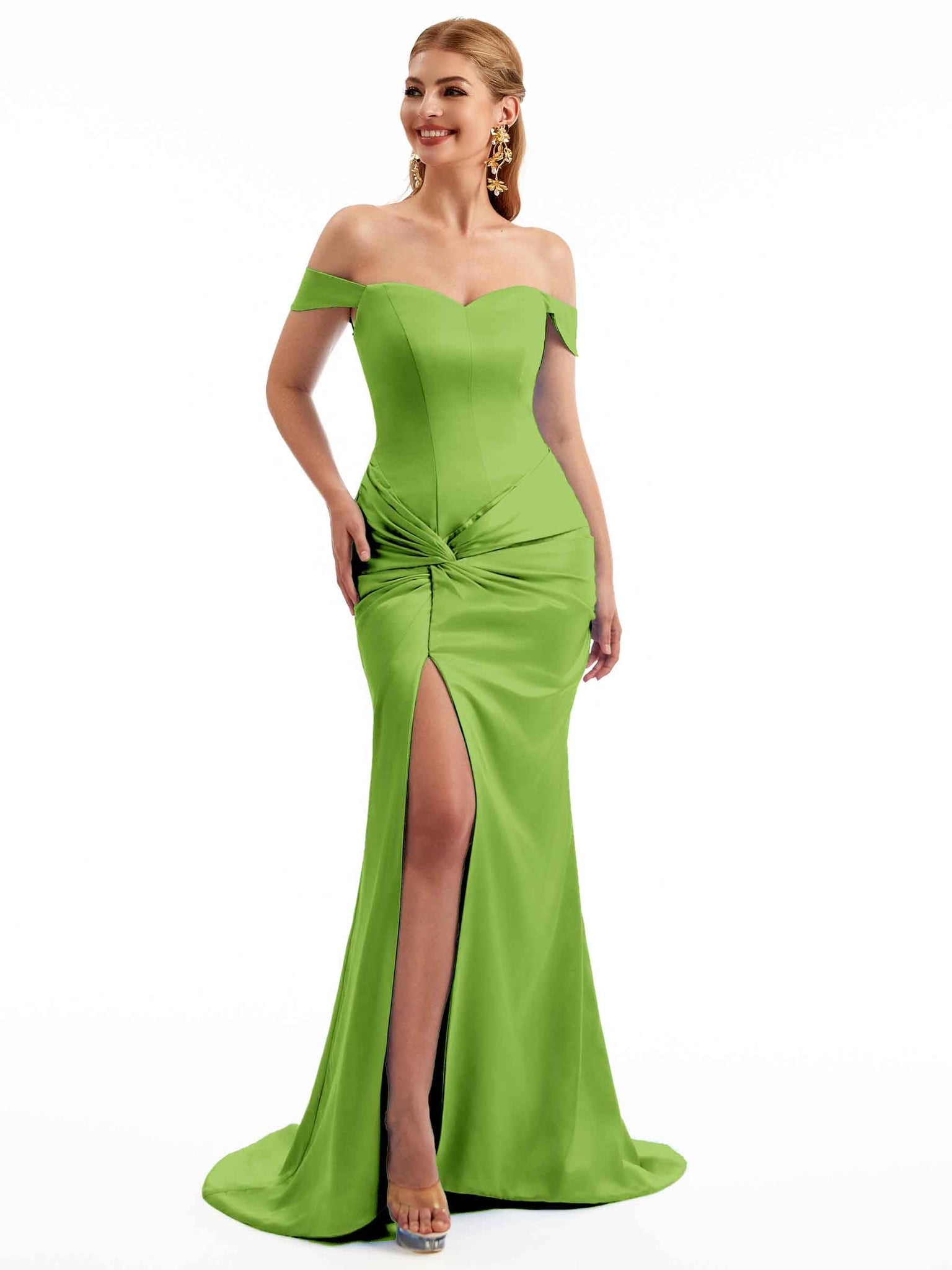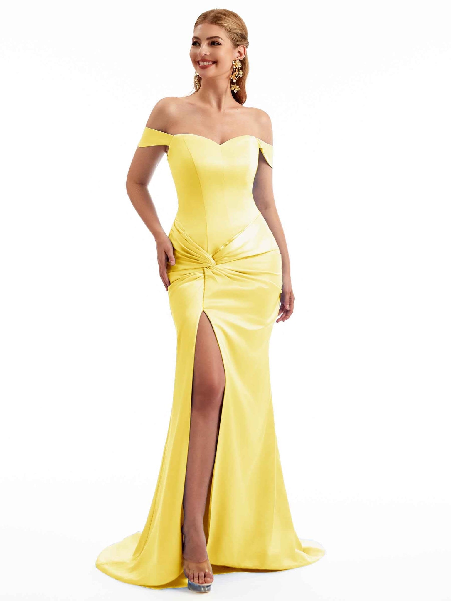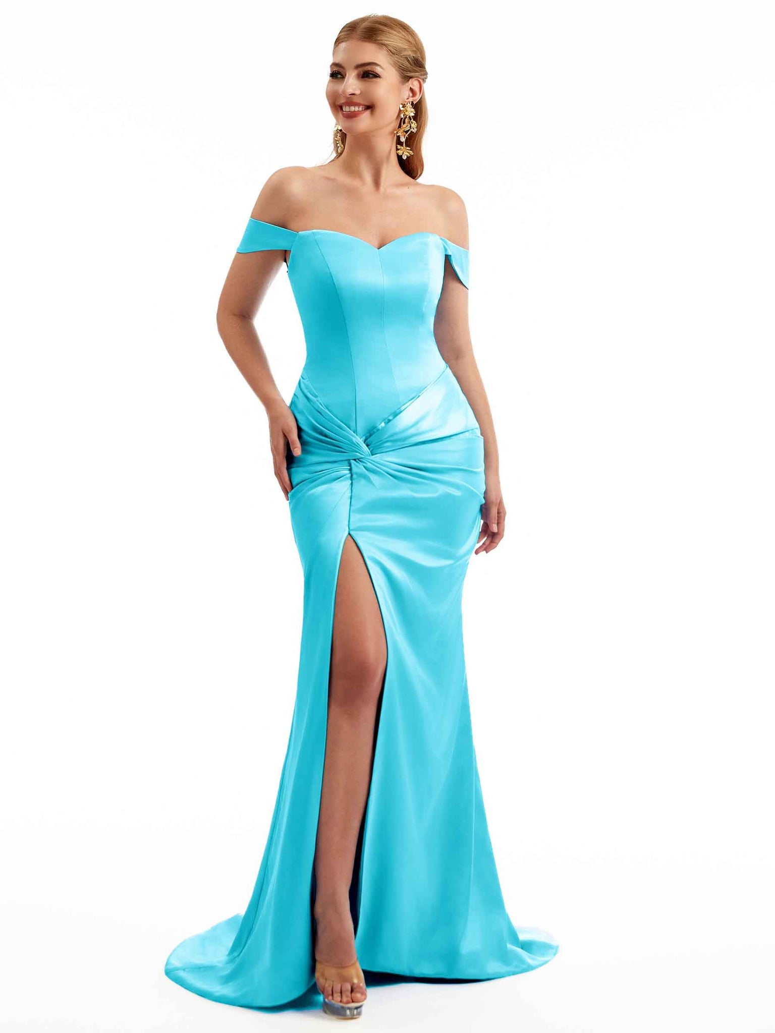 Women Side Split Off The Shoulder Long Boho Chic Satin Bridesmaid Dresses Online