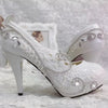 Women's Wedding Shoes Decorative White Pearl Wedding Heels Bridal Shoes, H87