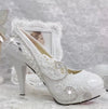 Women's Wedding Shoes Decorative White Lace Wedding Heels Bridal Shoes, H84